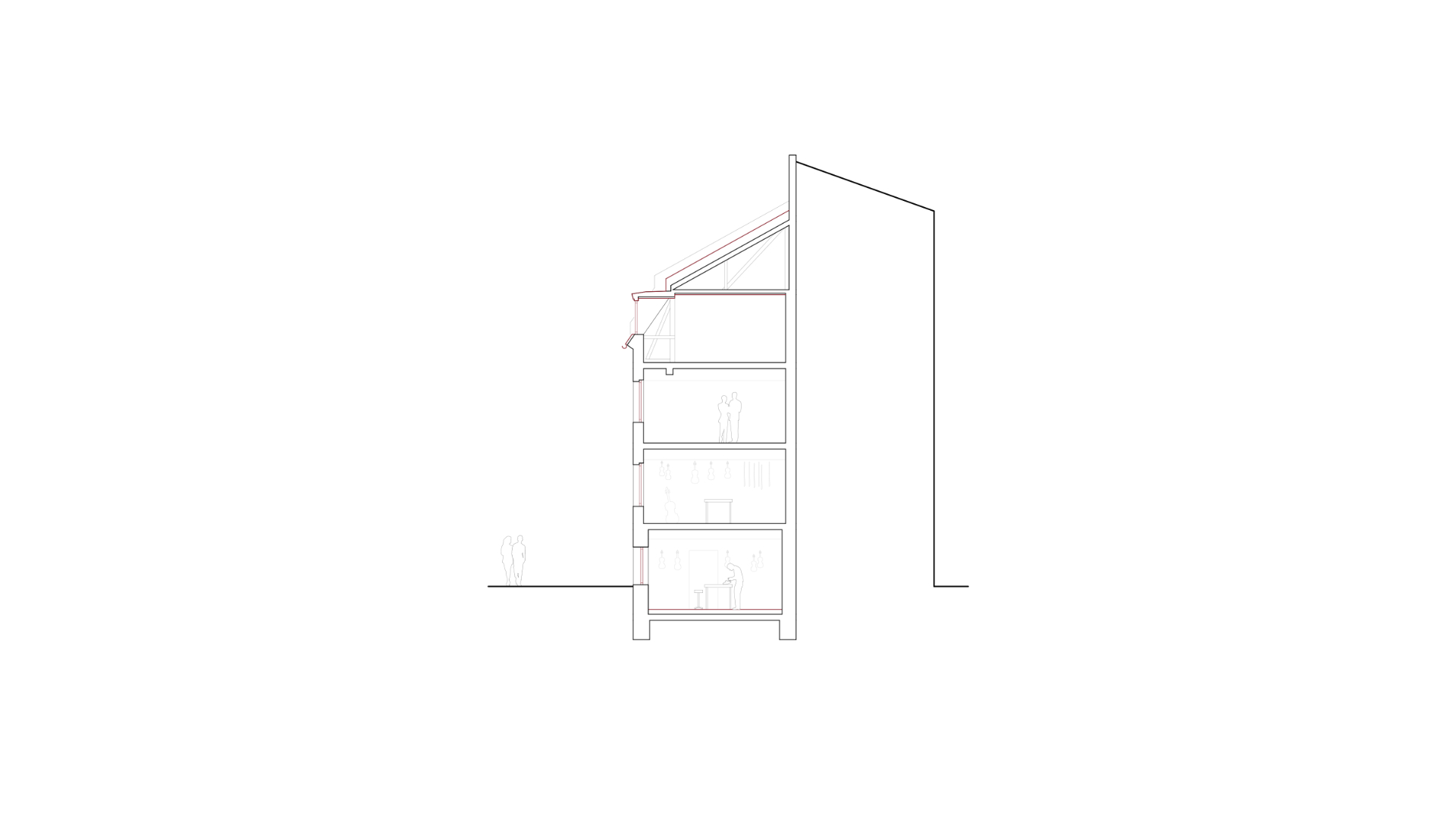 Das 1896 errichtete Rückgebäude ist im Ensemble denkmalgeschützt. Durch den Abbruch der Garagen und des Lastenaufzugs im Hinterhof kommt die ursprüngliche Wirkung des Gebäudes nun wieder besser zur Geltung. Die Fassade ist gleichmäßig gegliedert und die Nutzung im Souterrain weiterhin durch die anders gestalteten Werkstattfenster ablesbar. Aus der ehemaligen Spielwarenfabrik wird nach jahrelangem Stillstand eine Geigenbauwerkstatt, welche nun auch das Hochparterre nutzt. Die beiden Obergeschosse bilden eine Büroeinheit, die über eine neue interne Treppe verbunden sind. Es wurden das marode Dach saniert, eine Gaube ergänzt, Fenster und Türen sowie die gesamte Haustechnik erneuert.